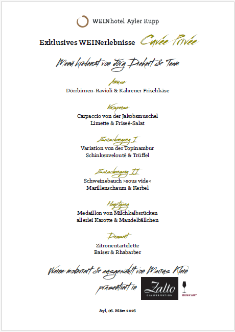 Mit Cuvée Privée laden das Weinrestaurant Ayler Kupp und die Vinothek der Saar zu außergewöhnlichen Wein- & Genussmomenten ein.